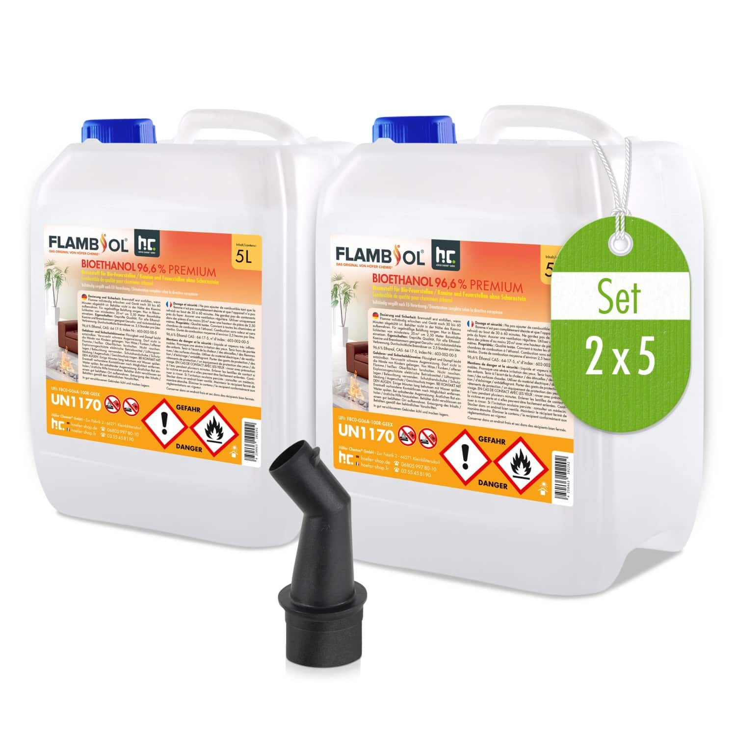 Flambiol Bioethanol 96,6% Premium: Reines Feuer für Ihr Zuhause (2 x 5l)